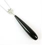 Náhrdelník z bílého zlata ryzosti 750/1000 zdobený velkou onyxovou kapkou (11,00 ct), 9 diamanty briliantového brusu (celkem 0,20 ct) a 6 akvamaríny (celkem 0,70 ct). Délka řetízku 45 cm. Rozměry závěsu 7,8 x 1 cm. Celková hmotnost 14,30 g.