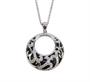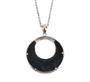 Náhrdelník z bílého zlata ryzosti 585/1000 zdobený kruhově řezaným onyxem a diamanty briliantového brusu o celkové hmotnosti 0,20 ct. Rozměry přívěsku (s očkem) 2,6 x 2 cm. Délka řetízku 40 cm. Celková hmotnost 5,23 g.