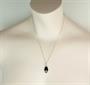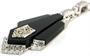 Náhrdelník z bílého zlata ryzosti 585/1000 zdobený onyxy a diamanty o celkové hmotnosti 0,06 ct. Celková hmotnost náhrdelníku: 3,98 g. Délka řetízku: 44 cm, rozměr přívěsku: 3 x 1,1 cm.