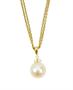 Náhrdelník ze zlata ryzosti 750/1000 zdobený přírodní perlou a třemi diamanty (SI-F) o celkové hmotnosti 0,054 ct. Délka dvojitého řetízku 45 cm. Celková hmotnost 2,40 g.