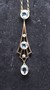 Zlatý náhrdelník s přírodními kameny a leukosafíry. Žluté zlato 375/1000, 585/1000. Přírodní kameny, váha celkem 3 ct. Přírodní leukosafíry, váha celkem 0,07 ct. Váha náhrdelníku: 6,58 g. Délka řetízku: 42 cm. Délka přívěsku: 5,5 cm. Osvědčení puncovního úřadu.