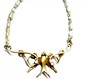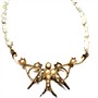 Malebný, něžný, zlatý náhrdelník s motivem vlaštovky. Šperk byl vyroben z netradiční ryzosti zlata 625/1000 na konci 19.století. Zdobí jej drobné, bílé, říční perly. Zlato má sytý, tmavší odstín. Celková váha 5,07 g. Délka 43 cm .Výborný stav.