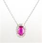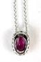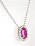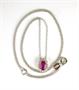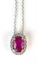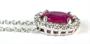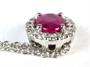 Náhrdelník z bílého zlata ryzosti 585/1000 zdobený rubínem o hmotnosti 0,40 ct a 16 diamanty o celkové hmotnosti 0,10 ct. Celková hmotnost náhrdelníku: 1,80 g. Délka řetízku: 45 cm, rozměr přívěsku: 0,8 x 0,7 cm.