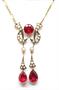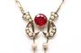 Zlatý náhrdelník se syntetickými rubíny a perličkami. Žluté zlato 333/1000. Syntetické rubíny, celková váha 5,8 ct. Perličky. Váha náhrdelníku: 8,78 g.