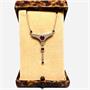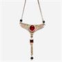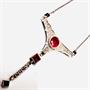 Originální náhrdelník z 18ti karátového zlata (750/1000). Šperk zdobí dva rubíny, 28 drobných briliantů a čtyři onyxy. Kameny jsou přírodního původu. Celková váha 4,41 g. Nastavitelná délka 40+ 5 cm. Šperk byl zhotoven ve stylu Art deco a je prodáván ve staré etuji.