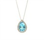 Náhrdelník z bílého zlata ryzosti 585/1000 s topazem o celkové hmotnosti 1,30 ct a diamanty briliantového brusu o celkové hmotnosti 0,20 ct. Celková hmotnost šperku je 1,74 g. Délka řetízku je 45 cm.