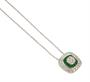 Náhrdelník z bílého zlata ryzosti 585/1000 zdobený diamanty briliantového brusu o celkové hmotnosti 0,25 ct a smaragdy o celkové hmotnosti 0,1 ct. Rozměr přívěsku 1 x 1 cm. Délka řetízku 42 cm. Celková hmotnost 2,26 g.