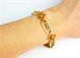 Prvorepublikový článkový náramek ze žlutého zlata ryzosti 585/1000 s pojistným řetízkem. Oválné články zdobené hvězdičkami jsou spojeny stylizovanými květy. Velmi dekorativní. Délka náramku je cca 19,5 cm. Celková hmotnost 13,68 g.