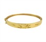 Jemně zdobený náramek ze zlata ryzosti 585/1000. Vnitřní rozměry náramku 7 x 6 cm. Celková hmotnost 9,94 g.