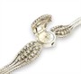 Nevšední luxusní náramek - hodinky z bílého zlata ryzosti 750/1000 zdobené přírodními diamanty briliantového brusu (celkem 1,60 ct!). Pod odklápěcí ozdobnou částí je skrytý ciferník, takže se hodinky dají nosit jako efektní náramek. Délka 17 cm. Celková hmotnost 38,64 g. Ke šperku je vyhotoven odborný gemologický posudek (dr. Hyršl).
