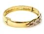 Kruhový prvorepublikový náramek ze zlata ryzosti 585/1000 (punc lvíček) zdobený přírodními diamanty briliantového brusu (celkem cca 0,68 ct). Rozměry 6,2 x 5,5 cm. Celková hmotnost 23,78 g. Součástí je znalecký posudek na kameny.