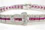 Zlatý náramek s brilianty a rubíny, zlato ryzost 585/1000, hmotnost 18,45 g. Náramek je osazen diamanty o celkové hmotnosti 1,43 ct a rubíny o celkové hmotnosti 6,87 ct, délka náramku 18,5 cm.
