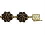 Článkový náramek ze zlata ryzosti 585/1000 zdobený českými granáty osazovaných do jednotlivých článku ve tvaru kytiček. Průměr kytiček 1,2 cm. Uzávěr umělecky gravírovaný rostlinným motivem je opatřen pojistkou. Délka 19 cm, celková hmotnost 23,42 g.