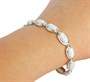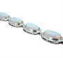 Náramek z bílého zlata ryzosti 585/1000 zdobený kvalitními přírodními etiopskými opály s ohnivými a zelnými odlesky. Délka 19,5 cm včetně zapínání. Celková hmotnost 13,50 g. Precizní zlatnická práce.