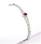 Náramek z bílého zlata ryzosti 585/1000 zdobený rubínem o hmotnosti 0,75 ct a sto deseti diamanty briliantového brusu, jejichž celková hmotnost je 0,55 ct. Celková hmotnost náramku je 8,12 g. Délka náramku je 19 cm.