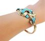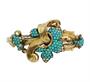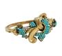 Starožitný náramek zdobený přírodními tyrkysy a říčními perličkami je zhotoven ze zlata ryzosti 580/1000, kameny v něm jsou zasazeny do stříbra ryzosti 980/1000. Rozměry náramku jsou 6,2 x 5,8 cm a hmotnost 16,24 g. Osvědčení Puncovního úřadu. Originální šperk z konce 19. století