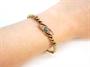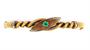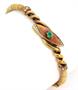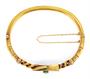 Kruhový náramek ze zlata ryzosti 580/1000 zdobený smaragdem (0,20 ct) a 14 diamantovými routami (celkem 0,15 ct). Rozměry 5,7 x 4,6 cm. Celková hmotnost 11,10 g. Pojistný řetízek. Značeno rakousko-uherským puncem AV. Součástí je certifikát o pravosti kamenů.