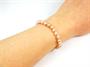Náramek z růžových perel o průměru 6-6,5 mm se zapínáním z bílého zlata ryzosti 585/1000. Délka náramku 20 cm. Celková hmotnost 12 g.
