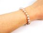 Náramek z růžových perel o průměru 8-8,5 mm se zapínáním z bílého zlata ryzosti 585/1000. Délka náramku 19 cm. Celková hmotnost 22 g.