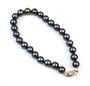 Náramek z tmavých perel o průměru 7-7,5 mm se zapínáním z bílého zlata ryzosti 585/1000. Délka náramku 19 cm. Celková hmotnost 17 g.