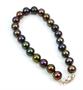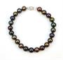 Náramek z tmavých perel o průměru 7,5-8 mm se zapínáním z bílého zlata ryzosti 585/1000. Délka náramku 19 cm. Celková hmotnost 19 g.