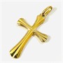 Větší přívěšek ve tvaru latinského kříže s rozšiřujícími se rameny, přední strana s efektními plastickými liniemi. Kvalitní italská zlatnická práce z přelomu 20. a 21. století.