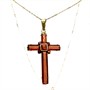 Půvabný závěs - granátový křížek. Šperk byl zhotoven ze zlata ryzosti 500/1000 v první polovině 20.století. Dominují mu granáty zajímavého červenooranžového odstínu. Celková váha šperku 1,85 g. Rozměry 4 x 2 cm. Závěs byl profesionálně vyčištěn, perfektní stav. Řetízek není součástí prodeje.