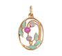 Jemný oválný přívěšek ze žlutého zlata ryzosti 585/1000 zdobí barevné kameny a tyrkysový smalt. Rozměr oválu 2,2 x 1,6 cm. Celková hmotnost 3,15 g.