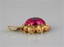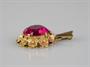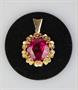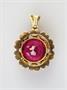 zlatý závěs se syntetickým rubínem, obruba kamene provedená z drobných kvítků, Au btto 3,67 g/585/1000, Československo, kolem r. 1938, dobový punc (lvíček); rozměry 2,5 x 1,8 cm