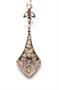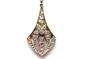 Zlatý přívěsek s diamanty Art Deco. Žluté zlato 715/1000, diamanty zasazeny ve stříbře 900/1000. Přírodní diamanty - routy, kvalita SI1 - I2, barva H - J, celková váha 0,3 ct. Váha přívěsku: 2,95 g. Rozměr přívěsku: 4 cm x 1,5 cm. Osvědčení puncovního úřadu.