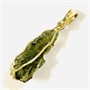Moderní, naturalistický přívěšek s přírodním surovým vltavínem hrubé struktury, jež je decentně přichycen zlatým drátem. Současná tuzemská autorská zlatnická práce.