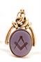 Zlatý přívěsek se zednářským symbolem. Žluté zlato 350/1000. Heliotrop, chalcedon. Váha: 8,32 g. Rozměr: 3,7 cm x 2,3 cm.