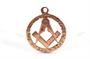 Zlatý přívěsek se zednářským symbolem. Žluté zlato 375/1000. Váha: 1,81 g. Průměr: 2 cm.