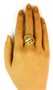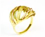 Výrazný prsten vyrobený v kombinaci žlutého a růžového zlata ryzosti 585/1000. Prsten kombinuje hladké a gravírované plochy a pruty, Velikost 54, celková hmotnost 5,10 g. Doklad estetiky 70. let 20. století. Na ruce nepřehlédnutelný. Výborný nenošený stav.