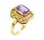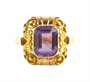 Starožitný zlatý prsten s fialovým korundem, zlato ryzosti 585/1000, punc čejka, hmotnost prstenu 3,79 g, velikost 56.