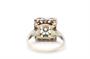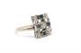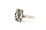 Zlatý prsten Art Deco s diamanty a safíry. Bílé zlato 550/1000, 585/1000, platina 950/1000. Přírodní safíry, celková váha 0,25 ct. Přírodní diamanty - starý brus, kvalita SI1 - SI2, barva H - J, celková váha 0,22 ct. Váha prstenu: 3,6 g. Velikost prstenu: 50,5. Osvědčení puncovního úřadu.