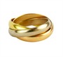 Prsten Trinity značky Cartier je zhotoven ze tří kroužků - z bílého, žlutého a růžového zlata ryzosti 750/1000. K prstenu je originální Cartier krabička. Celková hmotnost je 8,15 g. Velikost 51.