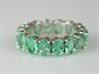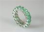 Zánovní prsten typu eternity z bílého zlata se smaragdy, celková hmotnost 4,09 g, Au 585/1000, český punc, 16 x smaragd oválného brusu 0,4 – 0,5 ct, celkem 7,31 ct, dobrá kvalita, certifikát GWLAB. Prsten byl vyroben v Izraeli ve 20. letech 21. století. Velikost prstenu 55.