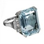 Prsten z bílého zlata zdobený velkým přírodním akvamarínem a brilianty.