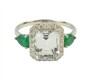 Prsten z bílého zlata ryzosti 585/1000 osazený smaragdy o celkové hmotnosti 0,50 ct, diamanty briliantového brusu o celkové hmotnosti 0,30 ct a velkým přírodním akvamarínem o hmotnosti 1,60 ct. Celková hmotnost prstenu je 2,87 g. Velikost 56.