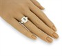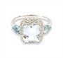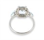 Prsten z bílého zlata ryzosti 585/1000 je ve svém středu osazen akvamarínem o hmotnosti 1,60 ct, po stranách topazy o celkové hmotnosti 0,60 ct a diamanty briliantového brusu o celkové hmotnosti 0,30 ct (PI/H). Celková hmotnost prstenu je 2,78 g. Velikost 56.