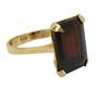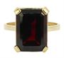 Jednoduchý elegantní prsten ze žlutého zlata ryzosti 585/1000 zdobí almandin rozměru 14 x 9 mm. Velikost prstenu 58, celková hmotnost 4,48 g.