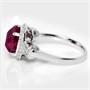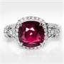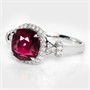 Zlatý prsten s přírodním almandinem a diamanty, Mahenge Garnet s hmotnosti cca 4,25 ct, Tanzanie, 47 diamantů o hmotnosti 0,35 ct. Celková hmotnost Au 3,54 g/585/1000, punc, certifikát. Západní Evropa, začátek 21. století, velikost prstenu 53. Velikost hlavy prstenu je 1 x 1 cm.