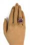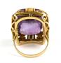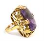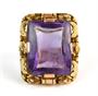 Výrazný prsten s ametystem byl zhotoven ze zlata ryzosti 585/1000, hlava prstenu 1,9 x 2,5 cm!!! zdobena florálními motivy.