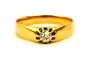 Prsten ze žlutého zlata ryzosti 585/1000 zdobený diamantem starého briliantového brusu hmotnosti 0,25 ct. Velikost prstenu 58, celková hmotnost 3,06 g. Punc liška.