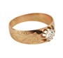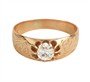 Prsten z růžového zlata ryzosti 585/1000 je osazen diamantem hmotnosti cca 0,40 ct, obroučka po stranách zdobena gravírováním. Rakousko-Uhersko. Celková hmotnost prstenu je 2,58 g a jeho velikost je 56.