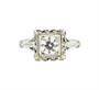 Prsten vyrobený z bílého zlata ryzosti 585/1000 osazený briliantem hmotnosti cca 0,40 ct. Mistrovská značka KF. Celková hmotnost prstenu 1,67 g, velikost 51. Prsten typické art deco fazóny z 30. let 20. století.