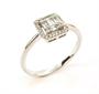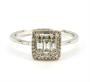 Prsten z bílého zlata ryzosti 585/1000 zdobený diamanty briliantového a bagetového brusu o celkové hmotnosti 0,25 ct, čistota SI, barva H. Velikost prstenu 55, celková hmotnost 2,03 g.