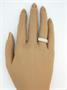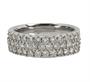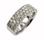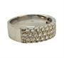 Prsten z bílého zlata zdobený třemi řadami diamantů broušených do briliantového brusu o celkové hmotnosti cca 1,2 ct. Zlato ryzost 585/1000, hmotnost prstenu 5,53 g. Velikost 52. Značeno DIC.