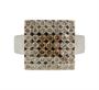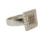 Prsten ze zlata 585/1000 se čtvercovou hlavou která je osazena bílými diamanty a středová část diamanty barvy Champagne. Celková hmotnost diamantů 0,5 ct. Hmotnost prstenu 8,18 g. Velikost prstenu 52. Rozměr hlavy prstenu 1,3 x 1,3 cm.